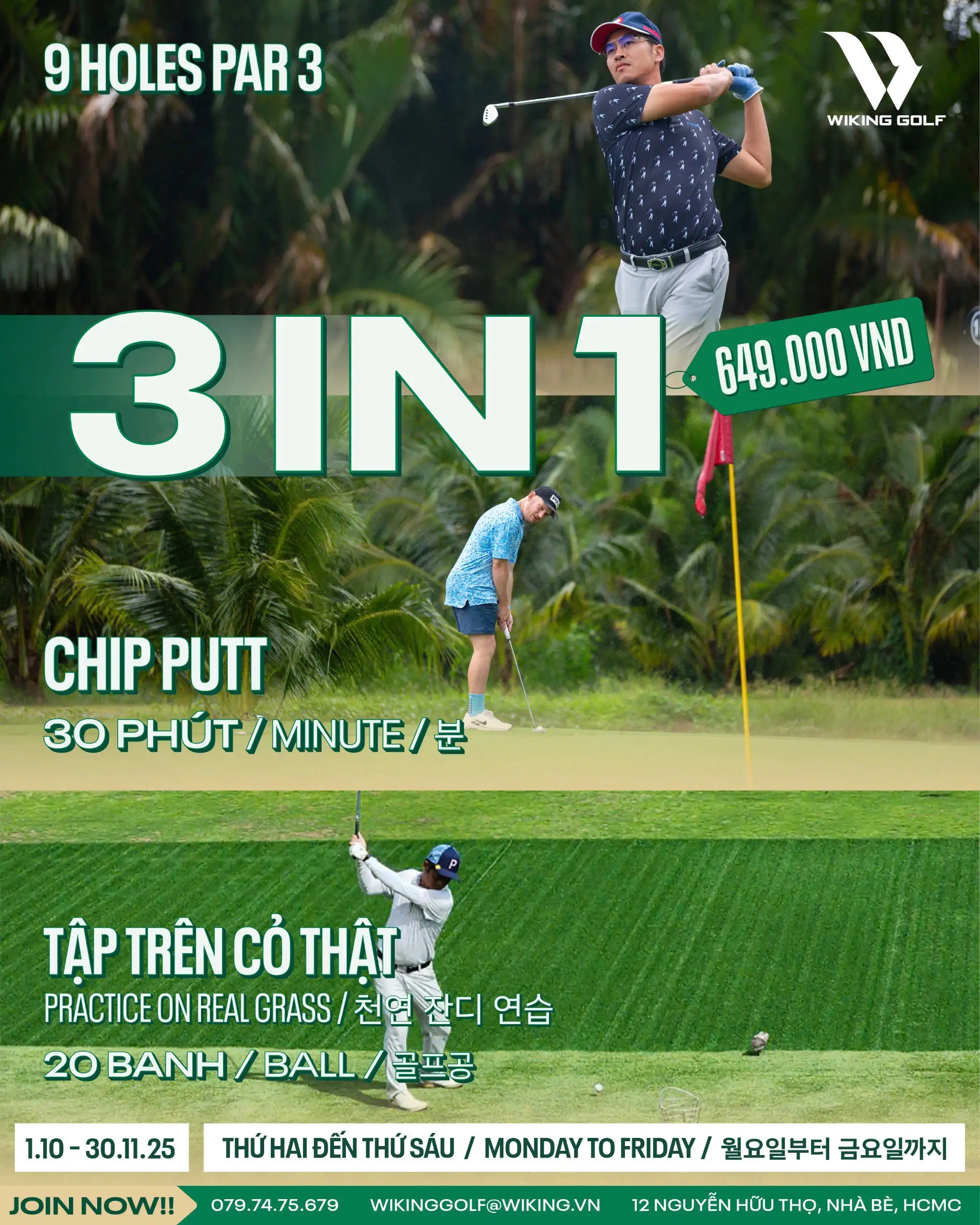 Located adjacent to the Phu My Hung urban area, Wiking Golf is a convenient practice destination for golfers. In a spacious and nature-friendly environment, golfers will experience a chip-putt practice area with a standard green surface, as well as participate in a 9-hole par 3 short game with realistic challenging situations. In addition, with a 300 yards driving range, 40 practice mats and 10 on-grass practice areas, golfers can refine their swing daily.
